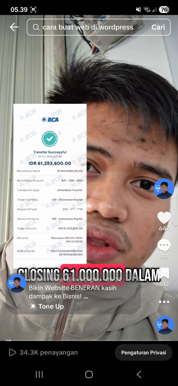 “Baru seminggu bikin web, udah langsung SEO dan ada yang chat ke saya lewat Web, emang berkualitas web dari kang Imam ni”